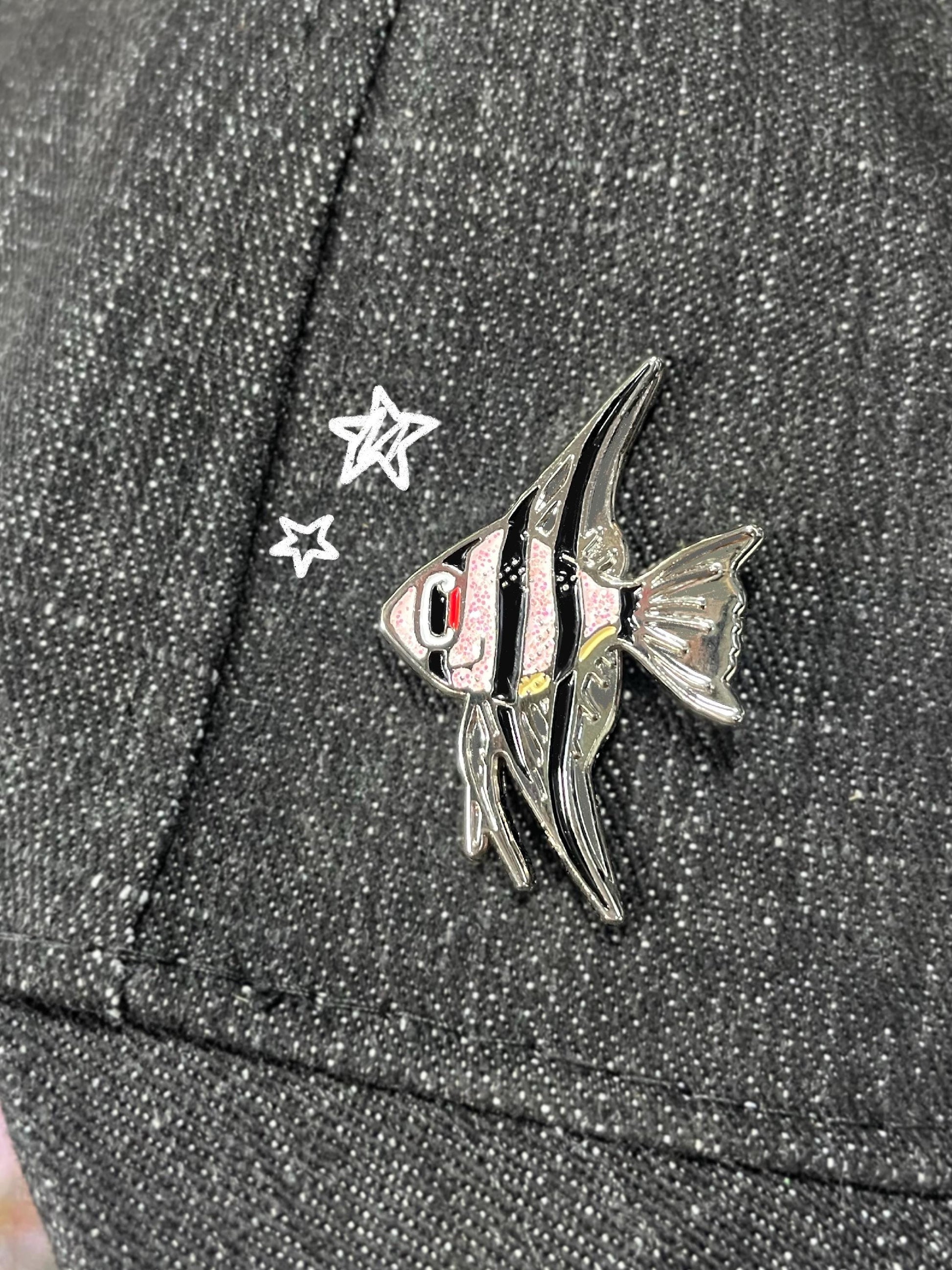 A little angelfish pin to accompany all angelfish lovers. Don’t miss the extra sparkle of iridescent glitter!