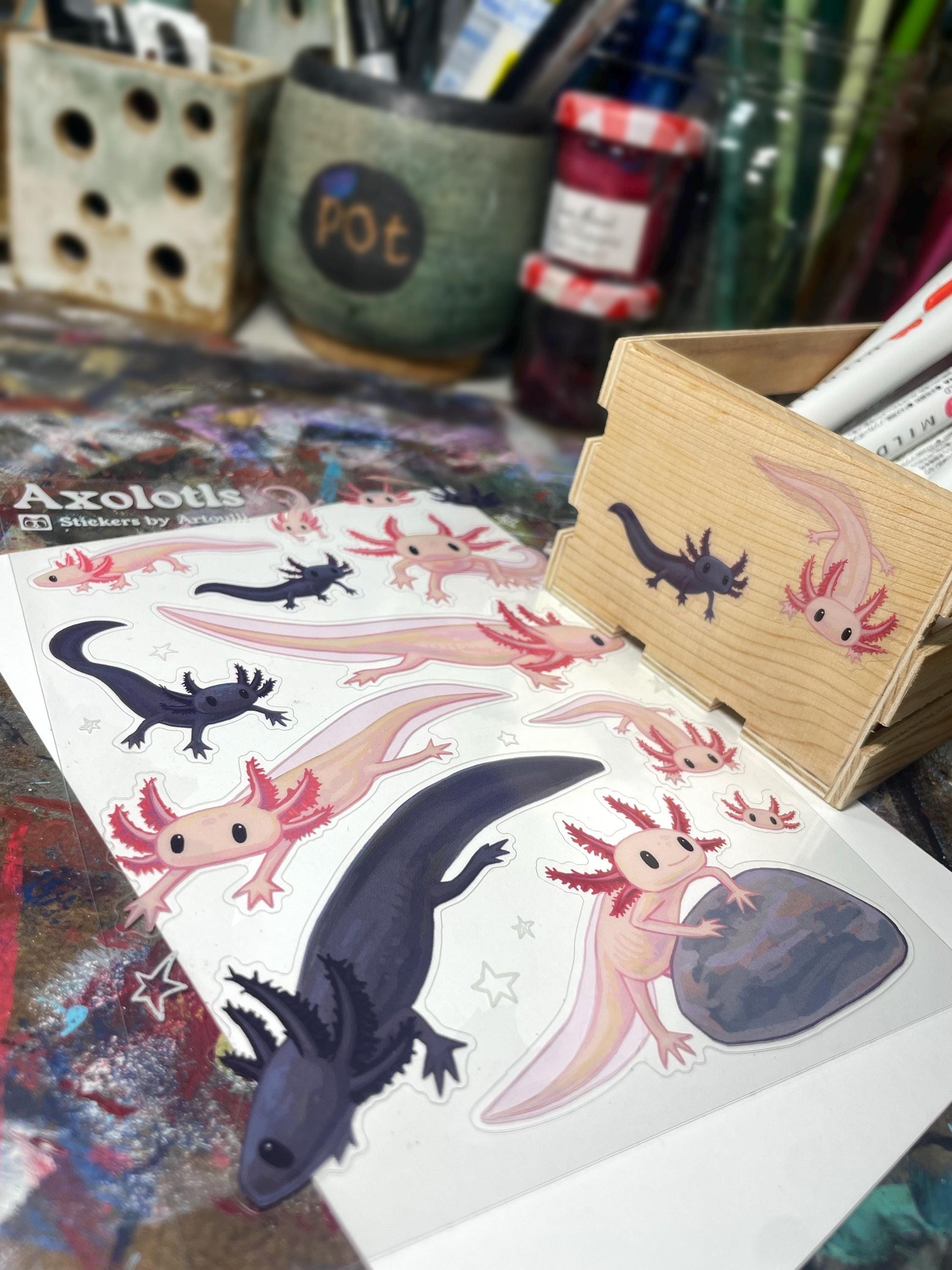 🐠 A great little gift for anyone who loves axolotls or aquariums- perfect for sticking on fish tanks, water bottles, windows, or anything that needs decorating!