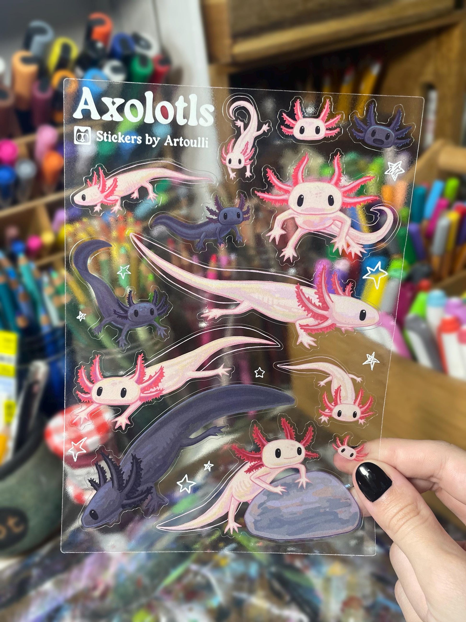 🪷 5x7 Transparent Clear Axolotl Sticker Sheet