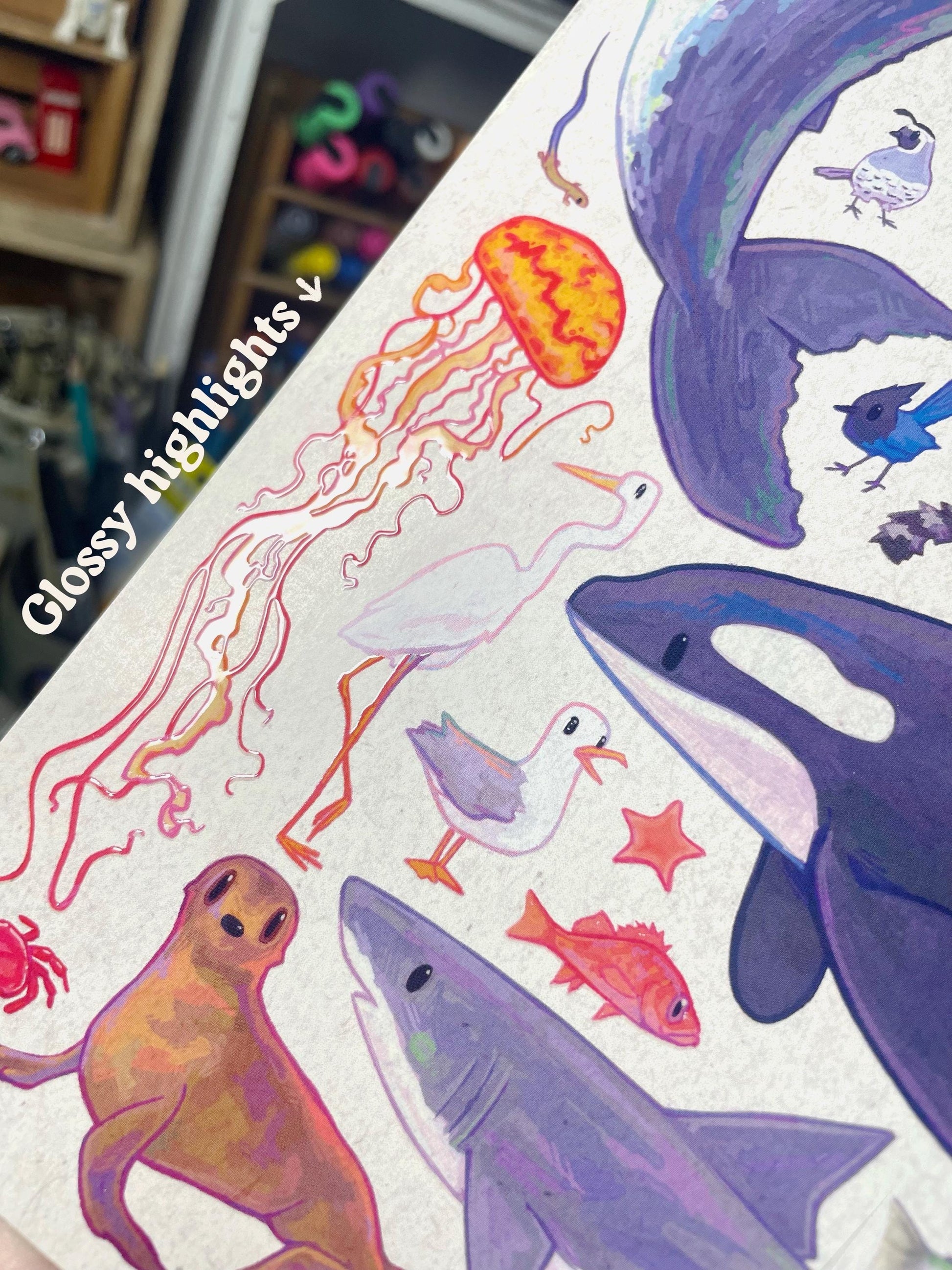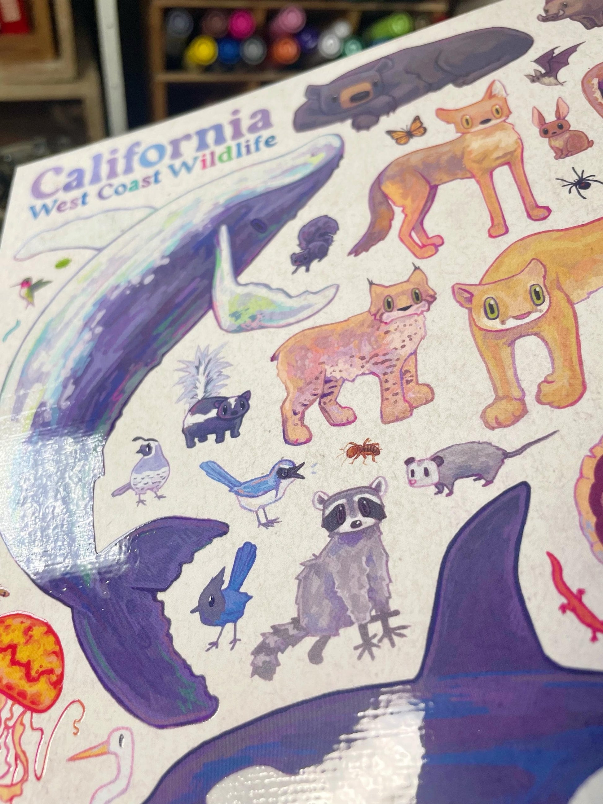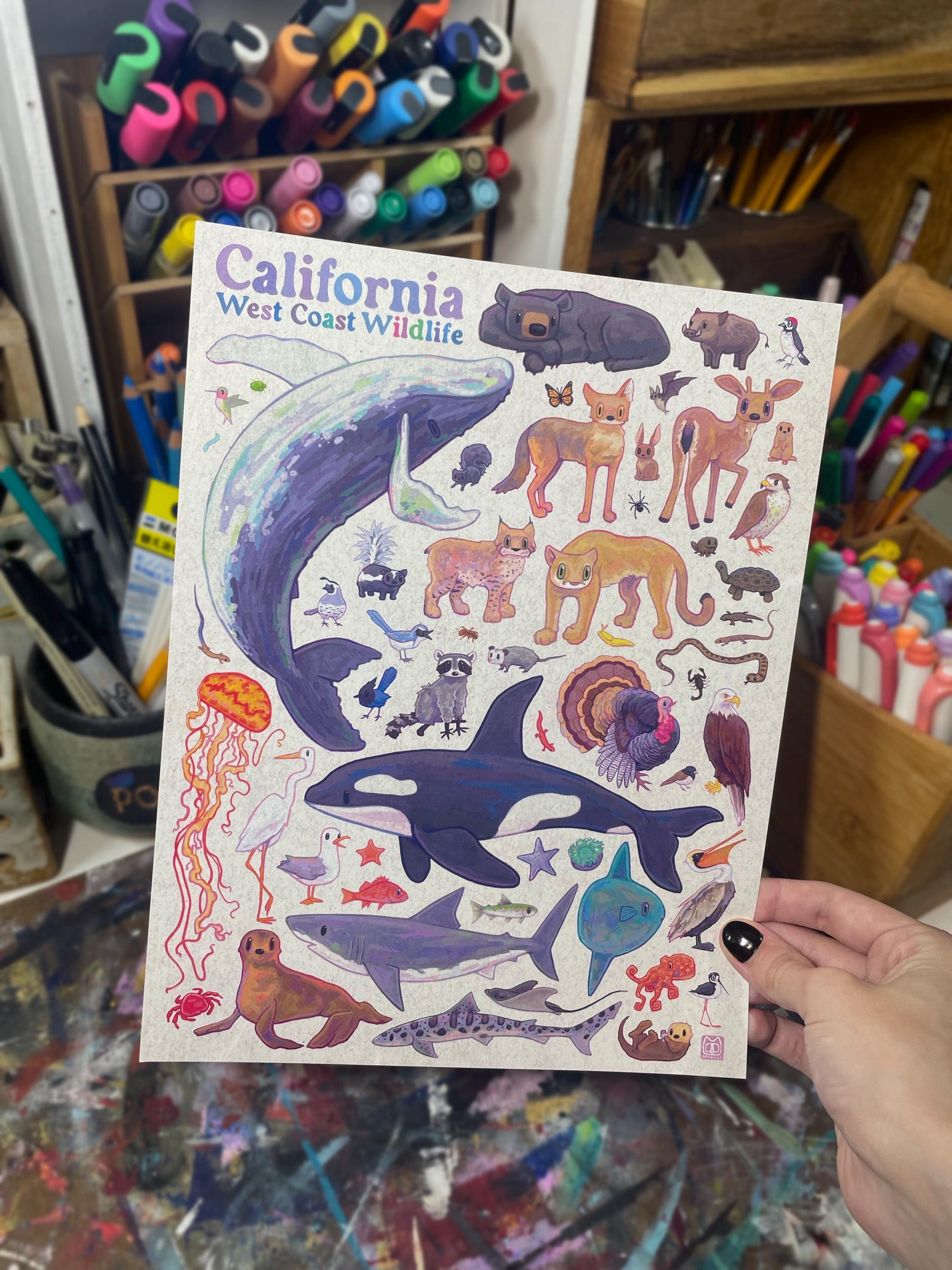 π± A print of some Californian wildlife in my own style showing off some of the gorgeous fauna around. This is heavily based on animals I see where I live in the Bay Area and Santa Cruz! Now featuring raised glossy highlights