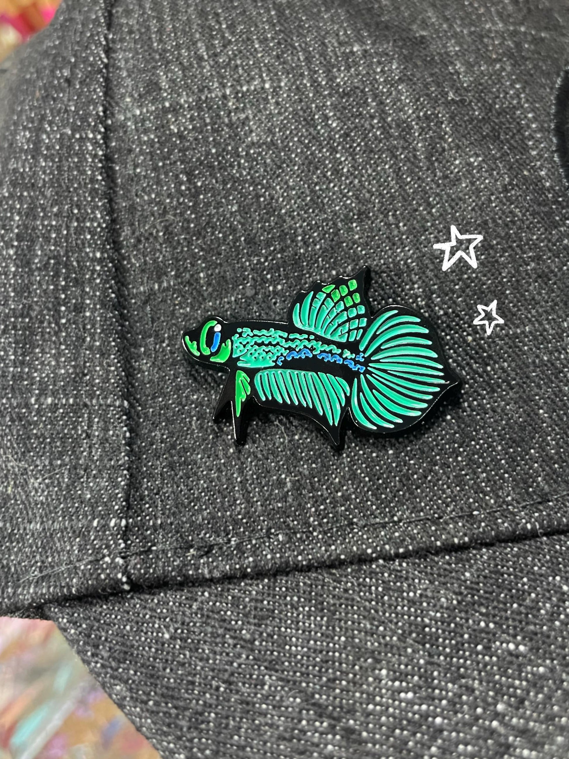A little set of my first aquarium pin collection featuring an: Angelfish, Pea Puffer, Betta, Shrimp, Oscar, and Hillstream Loach to accompany all aquarium lovers.