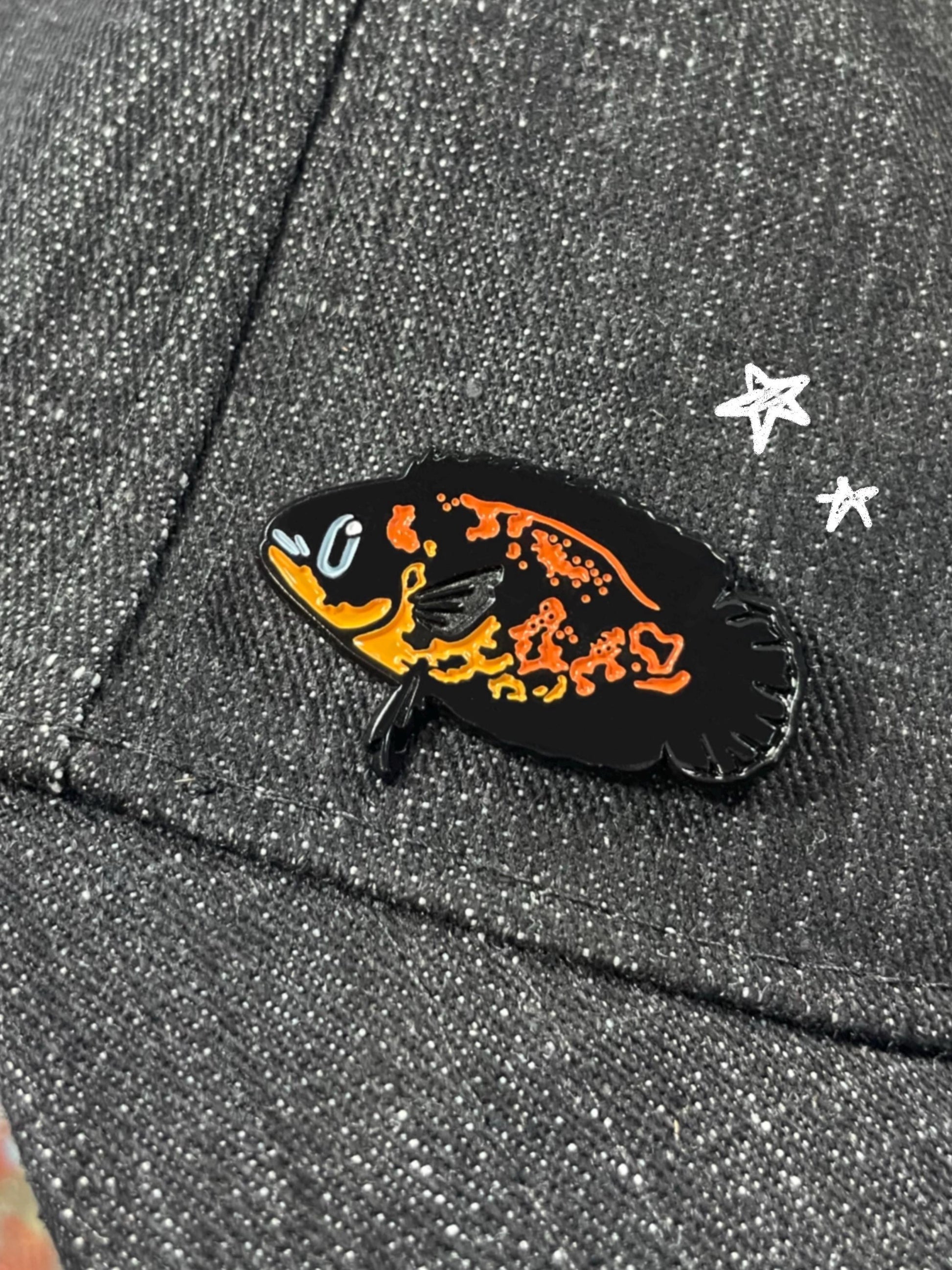 A little Oscar Cichlid pin to accompany all Oscar lovers as well as those who don‘t have the space to keep a real one.